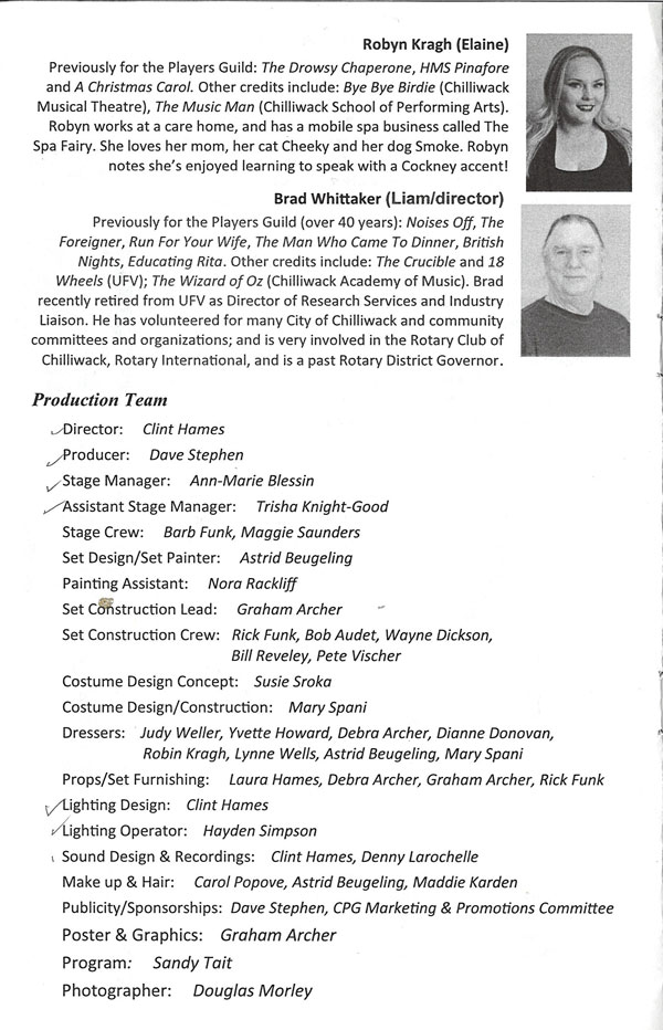 Stage Crew: Barb Funk, Maggie Saunders